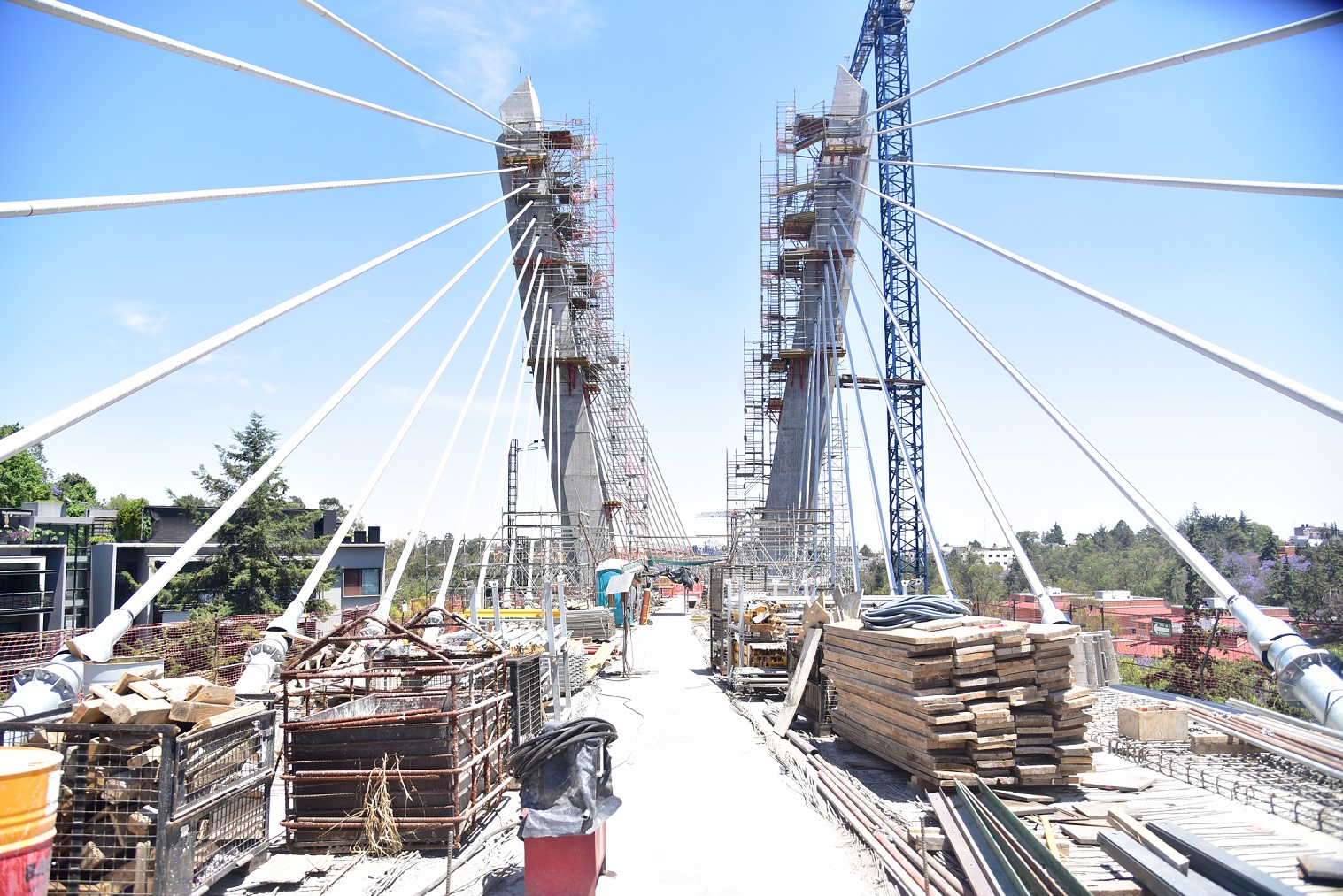 Con medio kilómetro de longitud y una elegancia que resalta entre la vegetación del Bosque de Chapultepec, el puente es único en su tipo: está sostenido por dos imponentes torres con ocho «arpas», cada una con 13 tirantes que parecen cuerdas tensadas al compás del progreso.