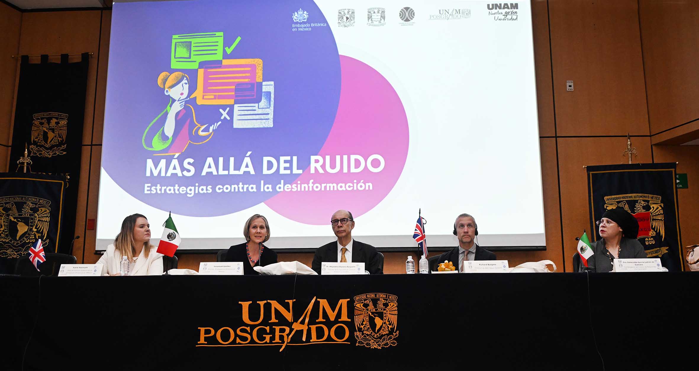 En un mundo saturado de datos, donde los audios, videos e imágenes generados por inteligencia artificial se mezclan con contenidos auténticos, distinguir lo verdadero de lo falso se ha convertido en un reto urgente. Así lo advirtió Susannah Goshko, embajadora del Reino Unido en México, durante su participación en la jornada “Más allá del ruido: Estrategias contra la desinformación”, organizada por la Facultad de Ciencias Políticas y Sociales (FCPyS) de la UNAM.