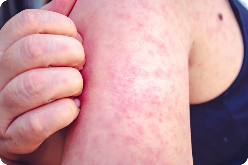 Ronchas que comienzan en la cabeza y se extienden por el cuerpo